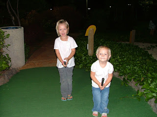 daddy helping emma megan "doesn't need any help", daddy still tried tho, he's such a good teacher! takin' lessons from the pro! lookin' good is all part of the game! of course the girls had to ride their ponies through the mini golf course!